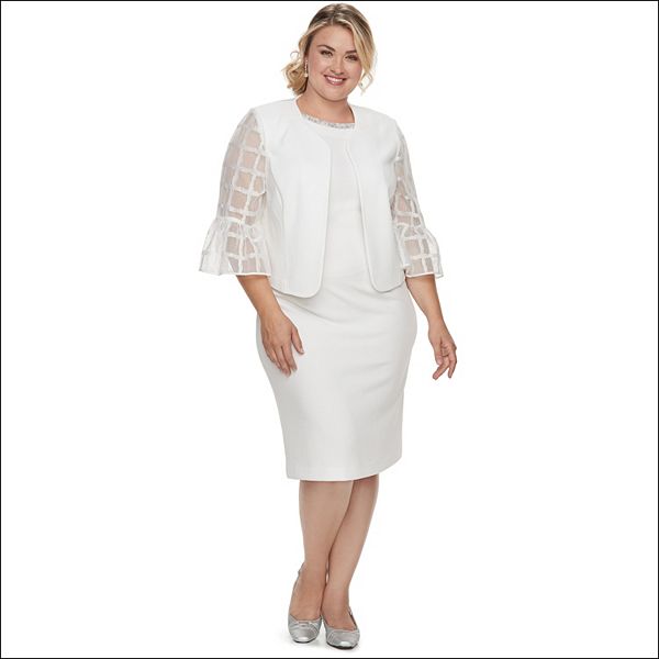 Plus Size Maya Brooke Embellished Sheath Dress Lace Jacket Set