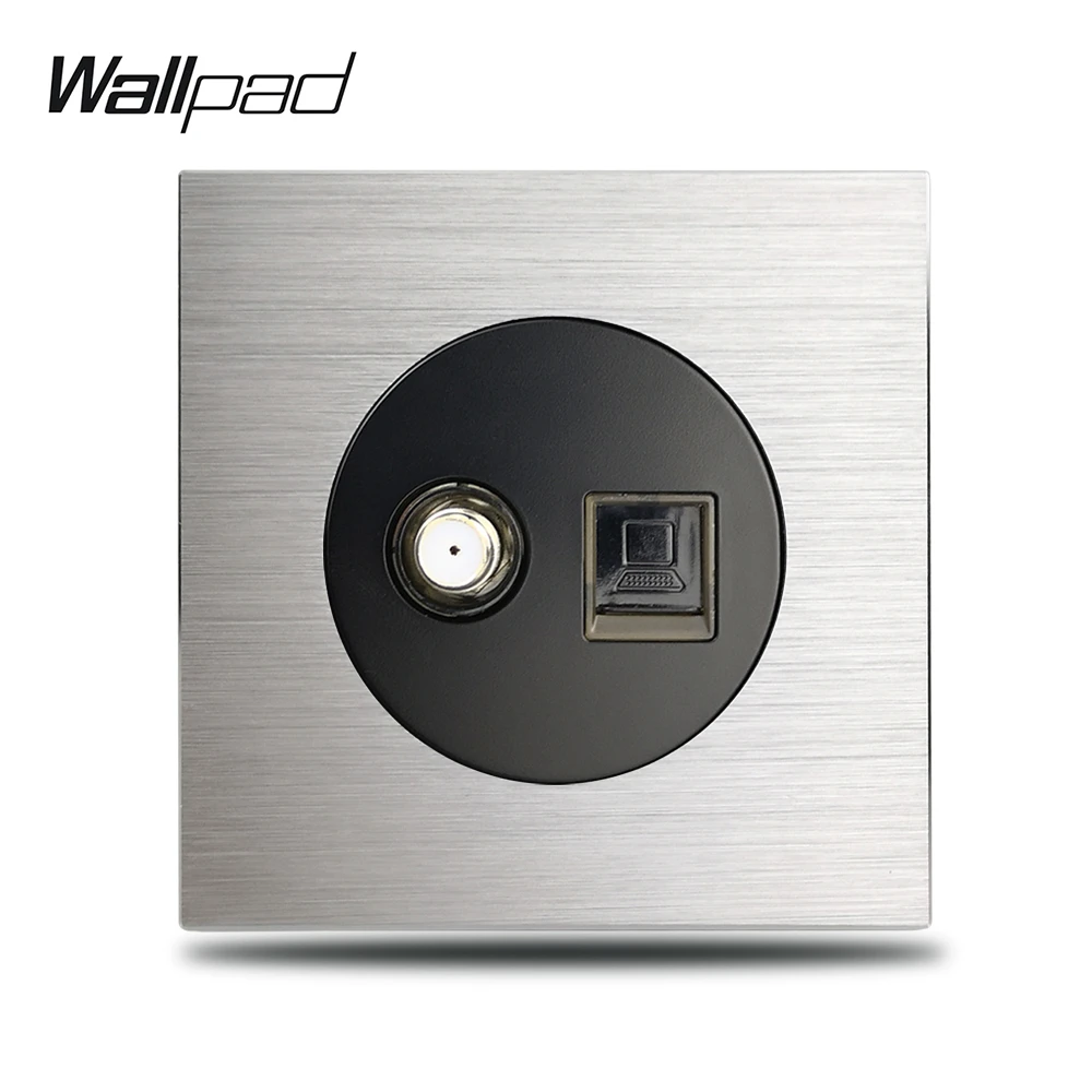 L6 Single Satellite Antenna TV & Data PC Internet RJ45 Wiring Wall Socket Outlet Silver Grey Brushed Aluminum Plate , 86 * 86 mm|Electrical Sockets| - AliExpress