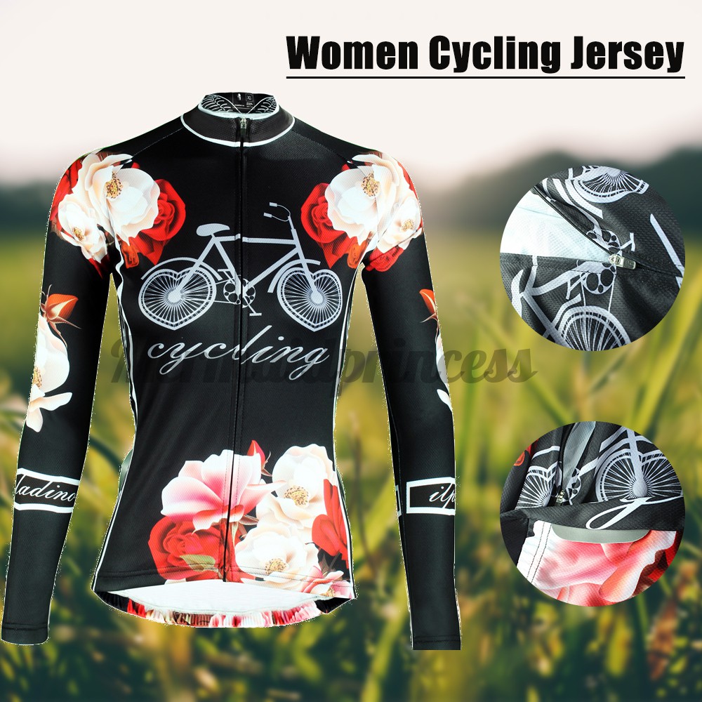 Ilpaladino Women S Long Sleeve Cycling Jersey Black Floral Botanical Bike Top Breathable Quick Dry Ultraviolet Resistant Sports Winter Elastane Mountain Bike Mtb Road Bike Cycling Clothing Apparel Shopee Singapore