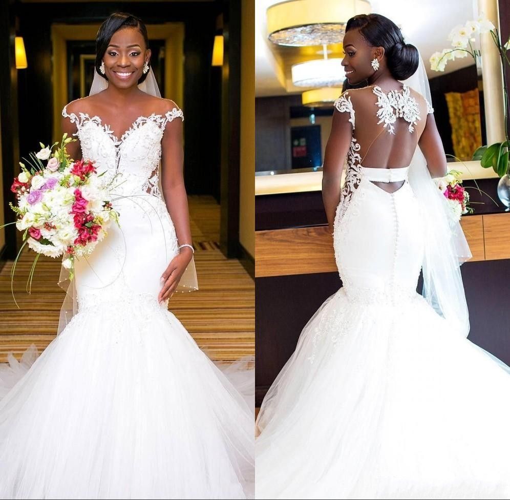 African Black Girls Mermaid Wedding Dresses 2019 Vestidos De Novia Bateau Cap Sleeves Open Back Plus Size Bridal Wedding Gowns From Bestoffers 152 26 Dhgate Com
