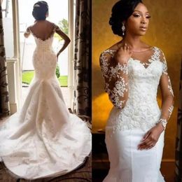 Black Girls Sexy Mermaid Wedding Dresses Long Illusion Sleeves Lace Applique Sweep Train Formal Wedding Gowns From Zaomeng321 140 21 Dhgate Com